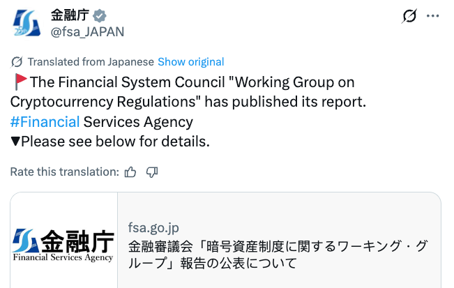 المصدر: CryptoNewsNet العنوان الأصلي: تخطط اليابان لتحول كبير مع انتقال العملات المشفرة من المدفوعات إلى قانون الأوراق المالية الرابط الأصلي: تستعد الجهات التنظيمية المالية في اليابان لنقل إشراف الأصول المشفرة من نظام المدفوعات في البلاد إلى إطار مخصص لأسواق الاستثمار والأوراق المالية.