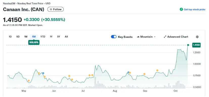 Canaan Inc. (CAN) subir a su nivel más alto en seis meses después de lanzar el centro de datos de gas para Bitcoin y AI