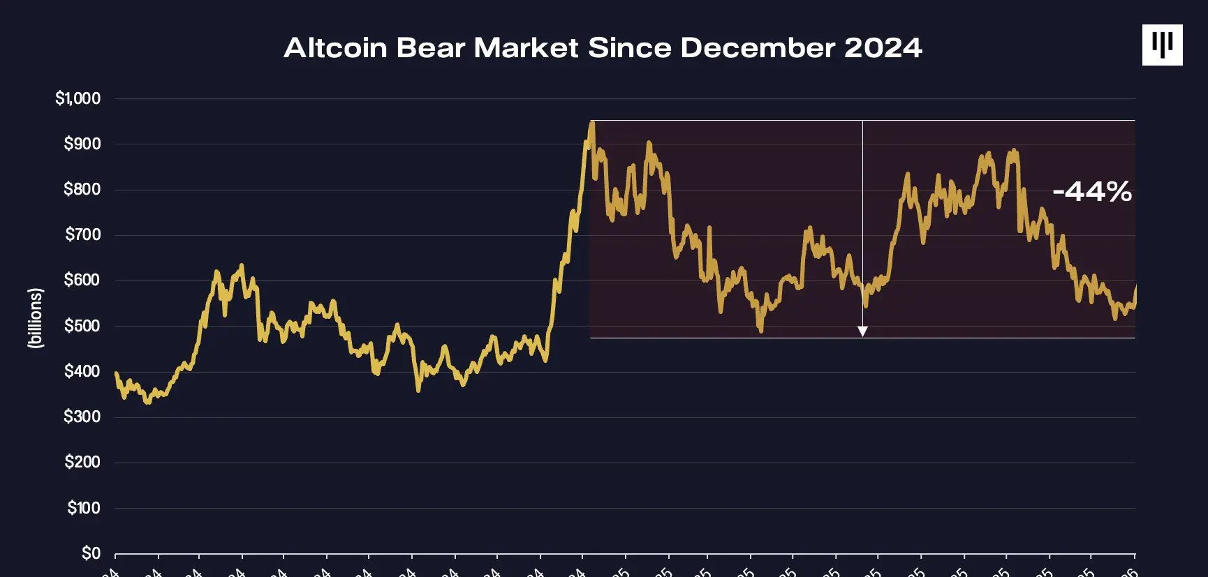 Lo que parecía ser un año agitado para las criptomonedas en 2025, era, en el fondo, un mercado bajista a gran escala para la mayoría de los tokens que comenzó más de un año antes, según la firma de capital de riesgo Pantera Capital.