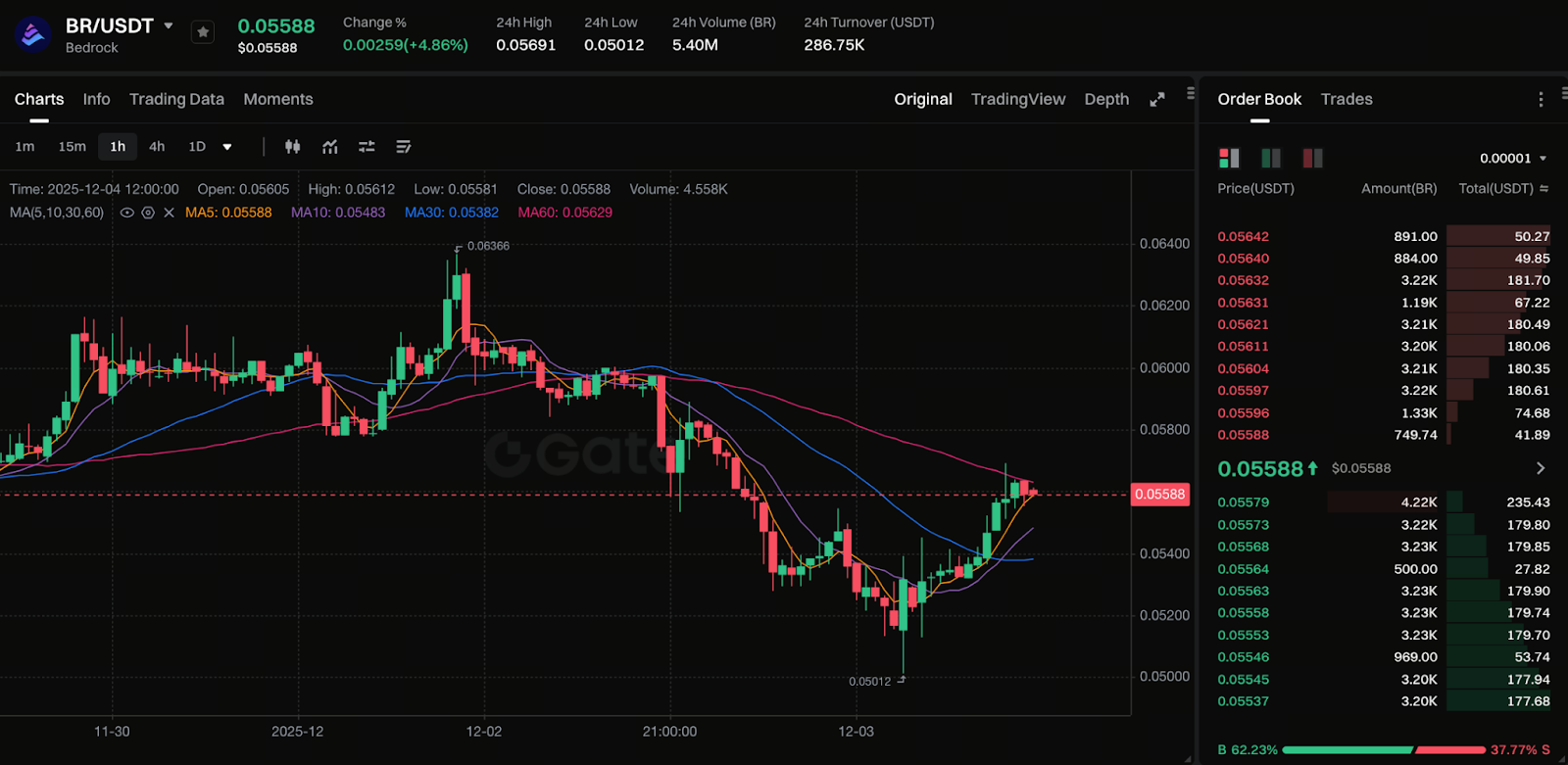 Source officielle : https://www.gate.com/trade/BR_USDT