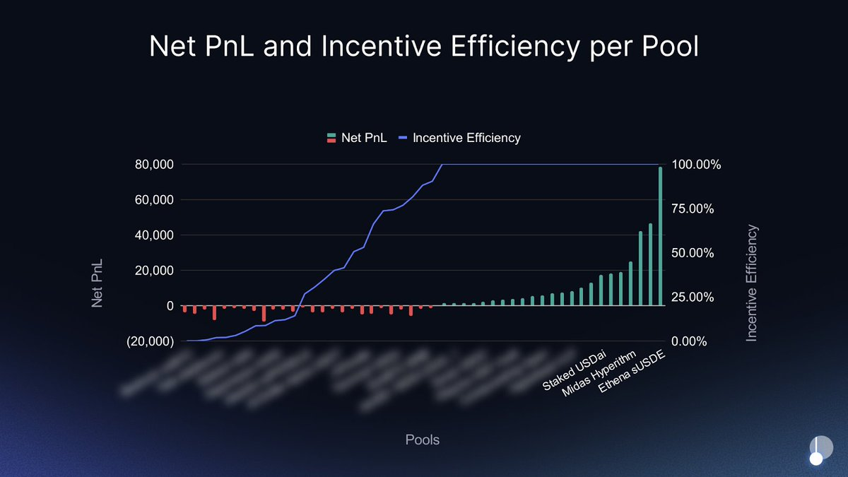Si l’efficacité globale des frais de Pendle a historiquement dépassé 1 (revenus > émissions), cela ne reflète pas la performance réelle de chaque pool.