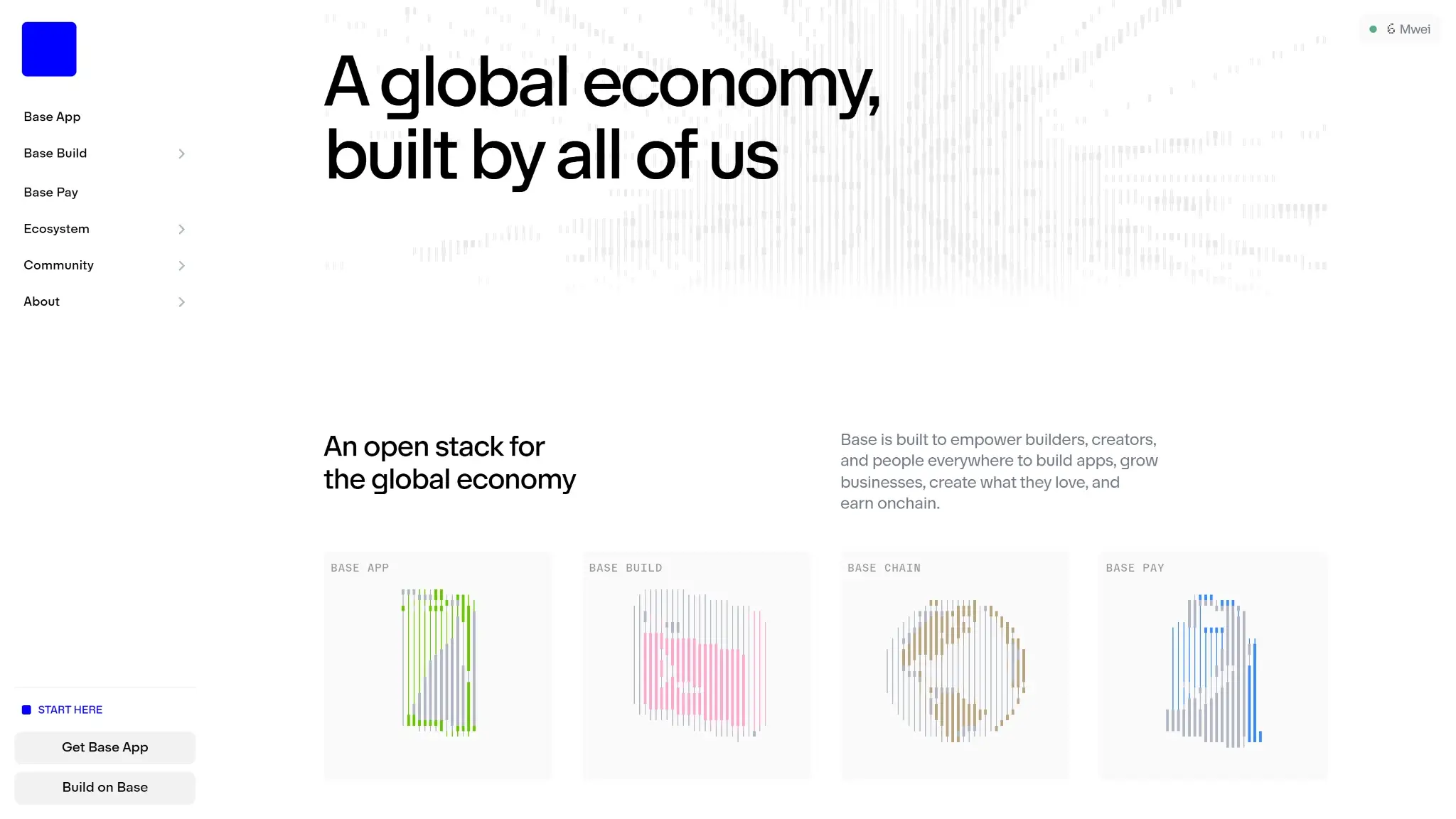 Page d’accueil de Base.org avec le slogan “Une économie mondiale, construite par nous tous” et des tuiles de produits.