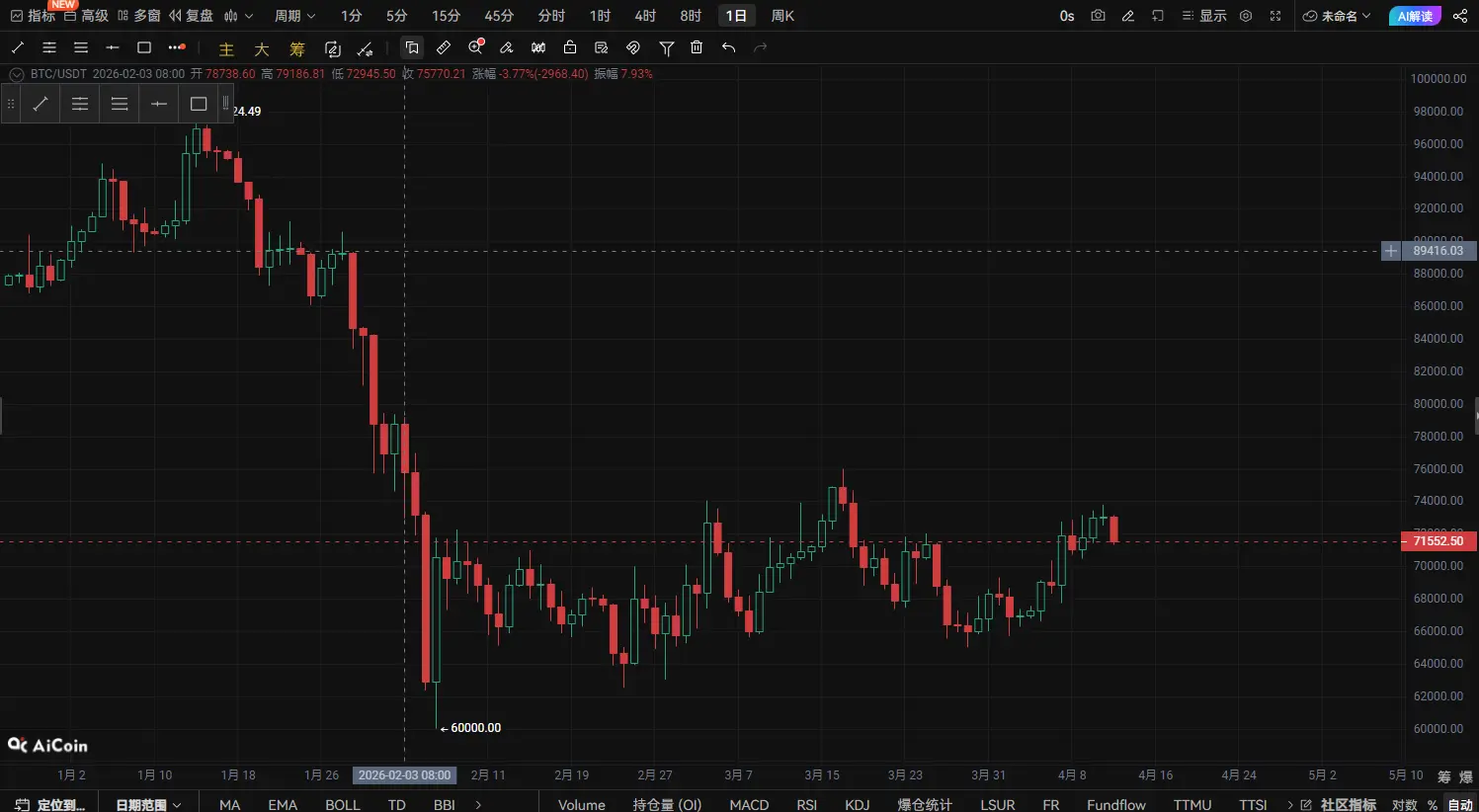 Harga Bitcoin BTC saat ini adalah 71.600 USDT. Dari grafik lilin terbaru, setelah menembus puncak 73.790, BTC mengalami penurunan cepat secara waterfall, menembus beberapa level support jangka pendek dalam waktu singkat, suasana pasar terlihat menurun secara signifikan.