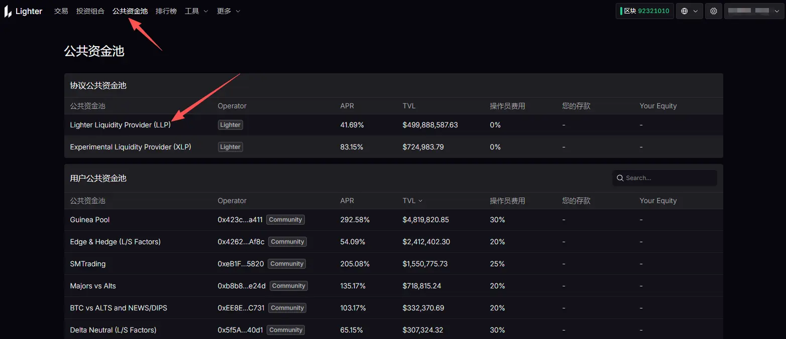 STEP 2. 「パブリックファンドプール」をクリックし、LLPを選択して資金を預けると、取引を通じてポイントを稼ぐことができる。