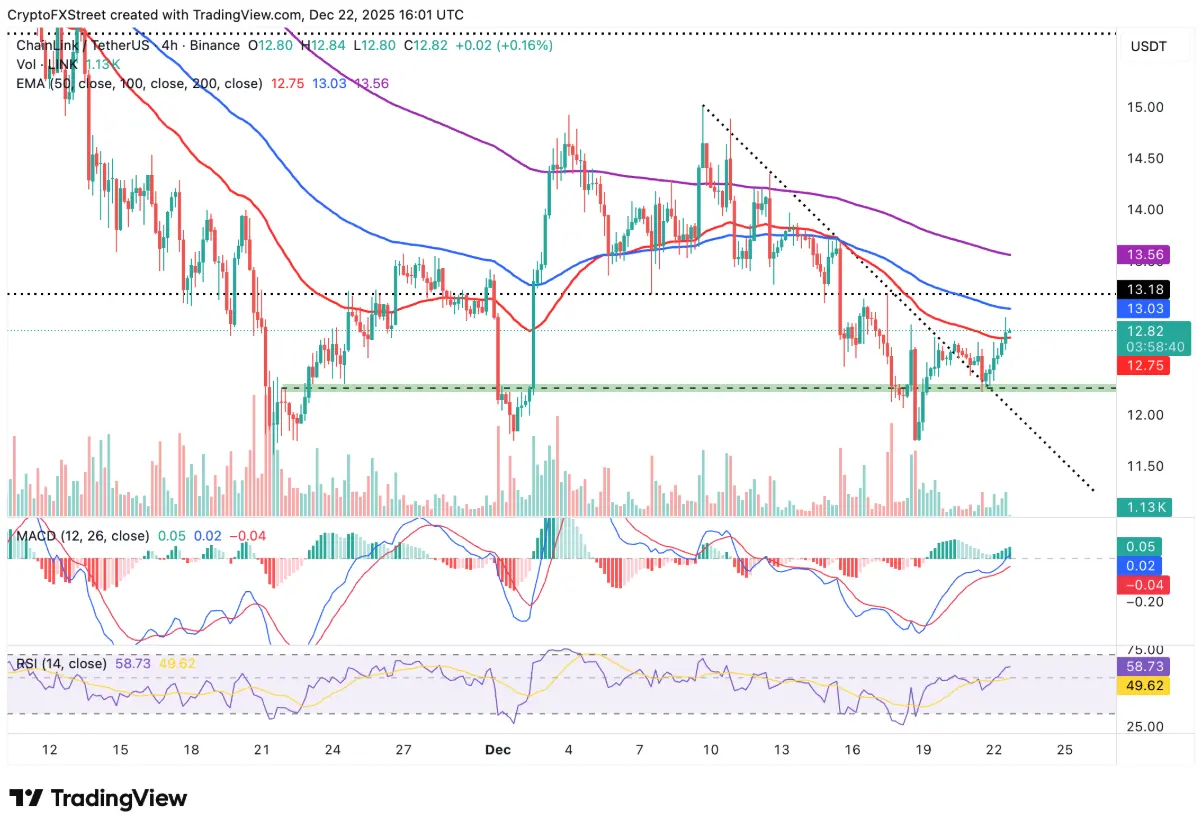 記事を書いている時点で、火曜日にChainlinkは、50期間の指数移動平均(EMA)の周りで12.75 USDのレベルで推移しており、日中の上昇を記録し、短期的なピーク12.95 USDに達しました。