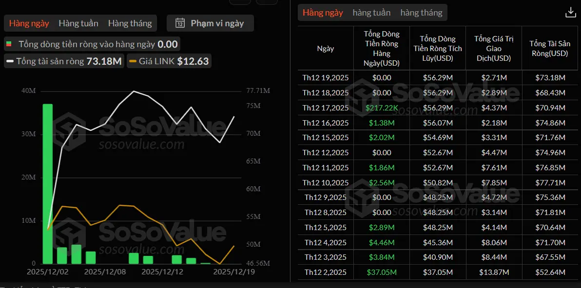 現在、Chainlink ETFの累積純流入総額は約5,600万ドルで、平均純資産価値は約7,300万ドルです。特に、グレースケールのGLNK ETFは、米国市場で上場および取引されている唯一のチェーンリンクETFです。