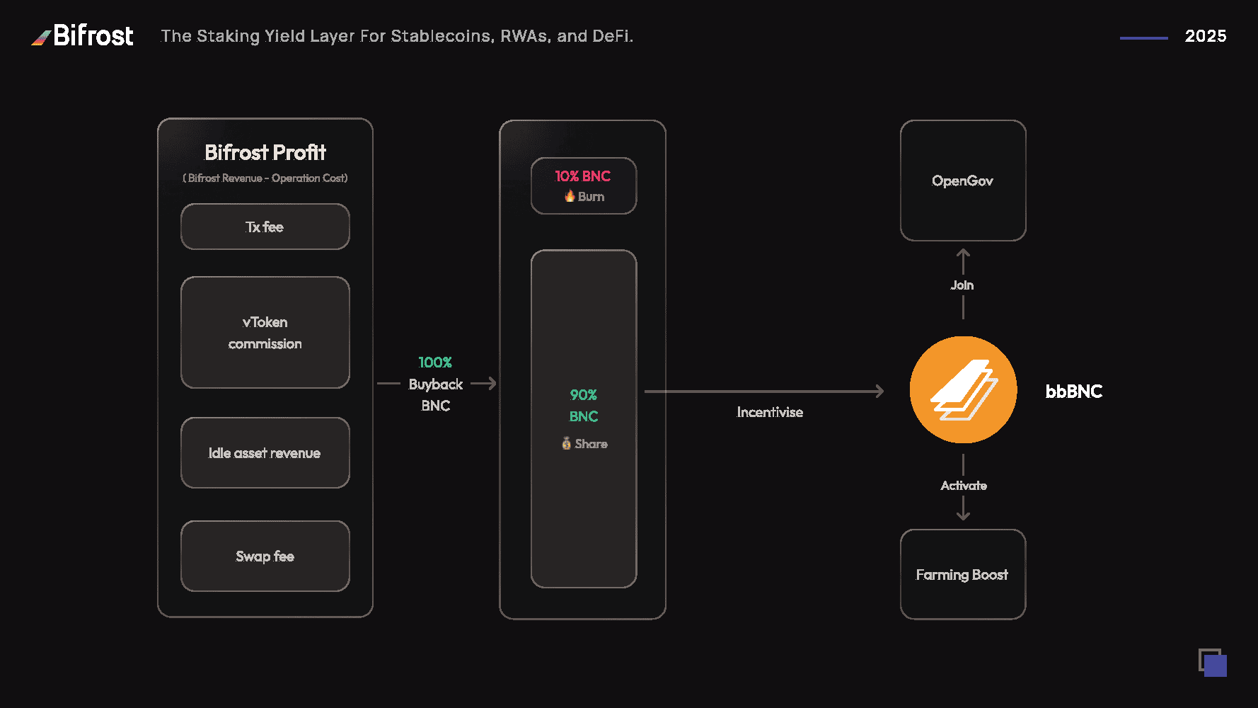 どれほど洗練された設計であっても、トークンの真の価値は最終的に収益と利益に結びつきます。Bifrostの第3フェーズは、この課題に正面から取り組み、確実性――収益とトークン価値の強い相関――に注力しています。彼らは主に二つのメカニズムでこれを実現しています。