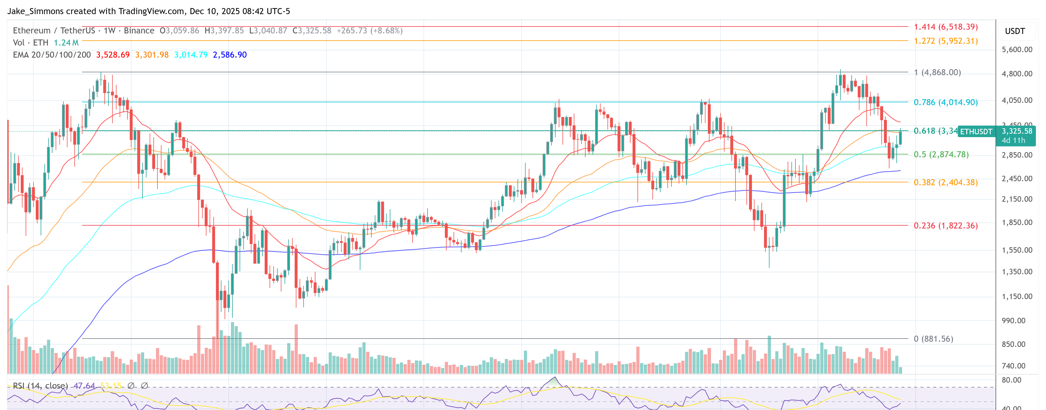 プレス時点で、ETHは$3,325で取引されています。