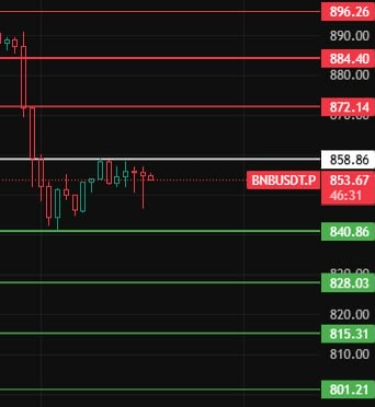 BNB: 关键位:858(突破需4H确认) 支撑阶梯:840 → 828 → 815 压力区间:872 → 884 → 896