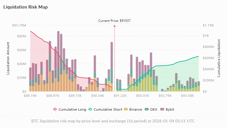 • 強力な支持基盤:$89,000(累積ロング清算ボリュームは約1億2,700万ドルで、90,635付近に集中し、下にサポートを形成しています)