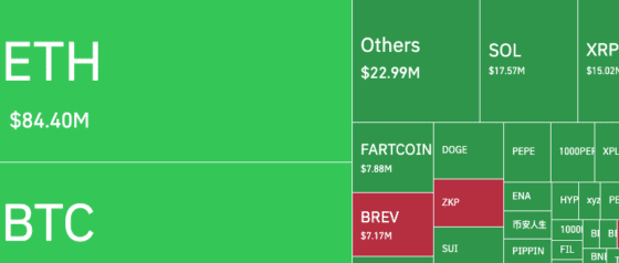 過去24時間で、ビットコインから約7483万ドル規模のポジションが清算された。そのうち約88.01%はロング(買い)ポジションだった。全体のデジタル資産市場では2億9615万ドル規模の清算が発生した。