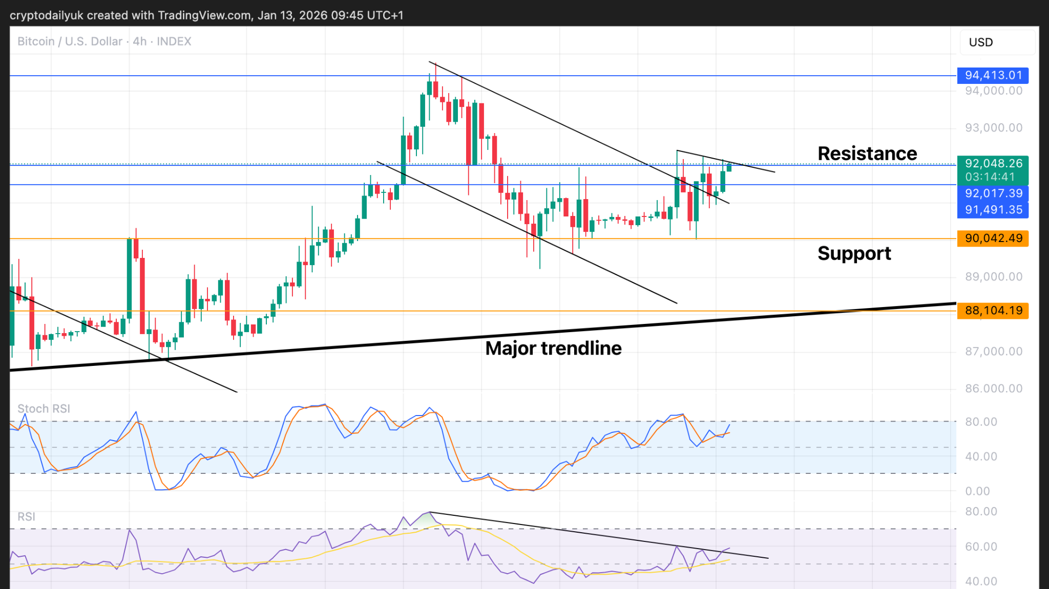 ビットコインが上昇突破:強気派が重要な$94K 抵抗線に向けて押し上げる – BTC テクニカル分析 2026年1月13日
