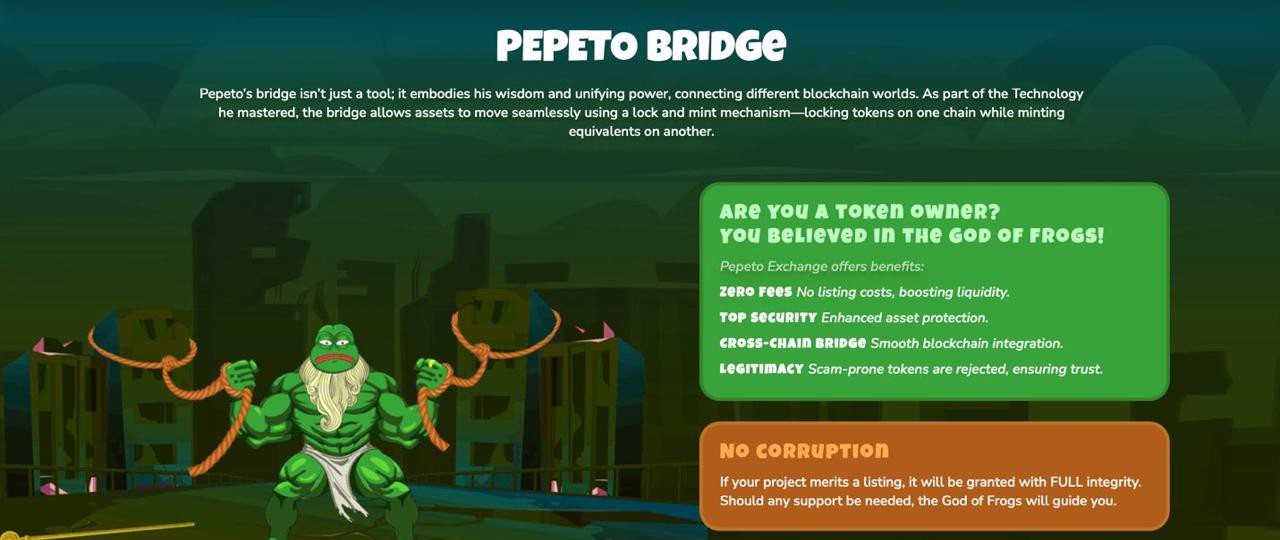 Dogecoinは、ユーティリティやインフラが不足しているにもかかわらず成功しました。ミームコインのバイラルダイナミクスと、実際のニーズに基づくエコシステムの組み合わせは何かを考えてみてください。Pepetoはまさにこの組み合わせを構築しています。PepetoSwapは、コストの摩擦を解消するゼロ手数料取引を提供します。Pepeto Bridgeは、クロスチェーンの移動を可能にし、断片化の問題を解決します。