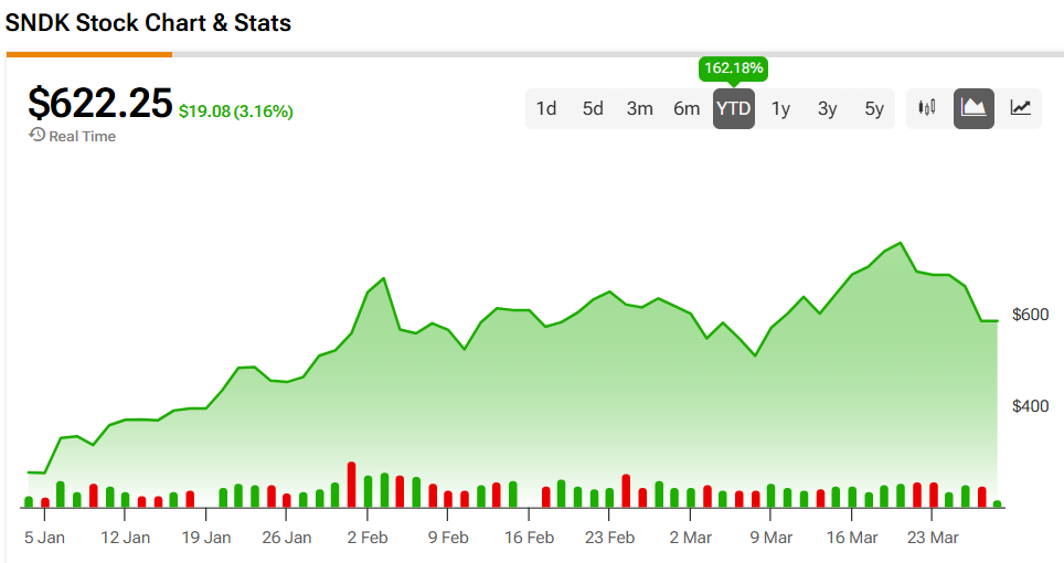 SanDisk Corp stock was up 3.16% on Friday, extending a 162.18% year-to-date gain. The shares have also rallied 1,131.71% over the past 12 months, serving as a clear example of how the AI boom has benefitted SNDK.