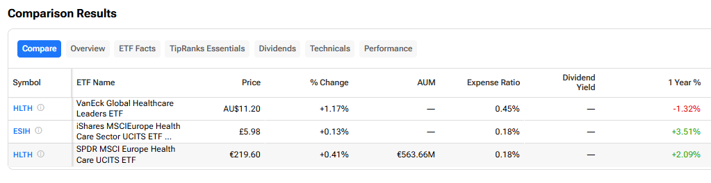 There’s also the iShares MSCI Europe Health Care Sector ETF (ESIH), the largest and most liquid ETF that tracks the MSCI Europe Health Care index. And the Amundi STOXX Europe 600 Healthcare ETF HLT -1.76% ▼ , which follows the broader STOXX Europe 600 Healthcare index and includes 55 leading healthcare firms.