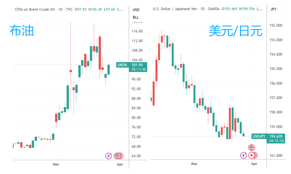 Since the resurgence of conflict between the U.S. and Iran on February 28, Brent crude oil has surged from $70 per barrel to $100, peaking close to $120 during this period. The exchange rate of the dollar to yen has also jumped from 155 to around 160.