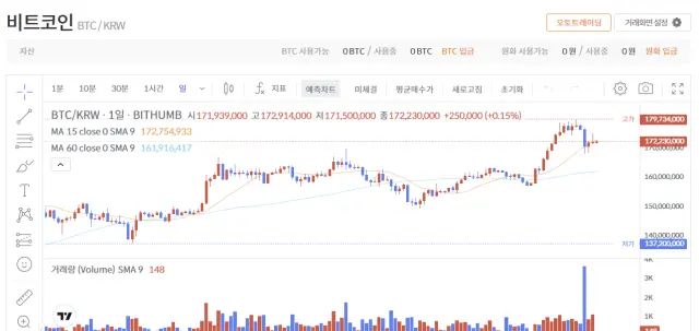 Às 8h do dia 14, o Bitcoin (BTC) estava sendo negociado a 172,23 milhões de won em uma certa bolsa, alta de 0,14% em relação ao dia anterior.