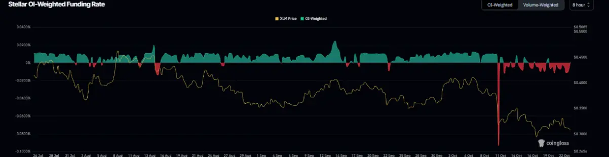De acordo com os dados da Taxa de Financiamento Ponderada pelo OI da CoinGlass, o número de traders apostando no cenário de queda do preço do Stellar (XLM) diminuiu significativamente em comparação com aqueles que acreditam na tendência de alta.