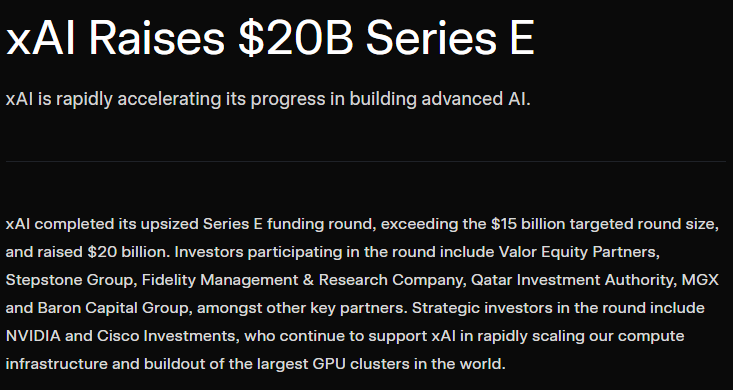 Fonte da imagem: xAI xAI conclui financiamento de 20 mil milhões de dólares, Nvidia também participa