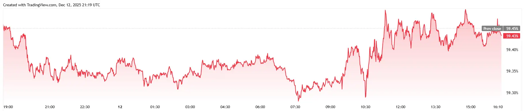 O volume diário de negociações subiu 34,61% para $82,08 bilhões, mas a capitalização de mercado caiu para $1,8 trilhão. A dominância do bitcoin permaneceu estável ao longo de 24 horas em 59,43%.