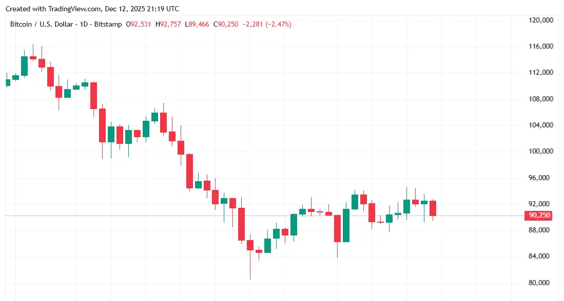 O bitcoin estava sendo negociado a $90.308,12 no momento do relatório, uma queda de 2,33% em 24 horas, mas um aumento de 0,93% na semana. O preço do ativo digital tem oscilado entre $89.532,60 e $93.554,27 desde a tarde de quinta-feira.
