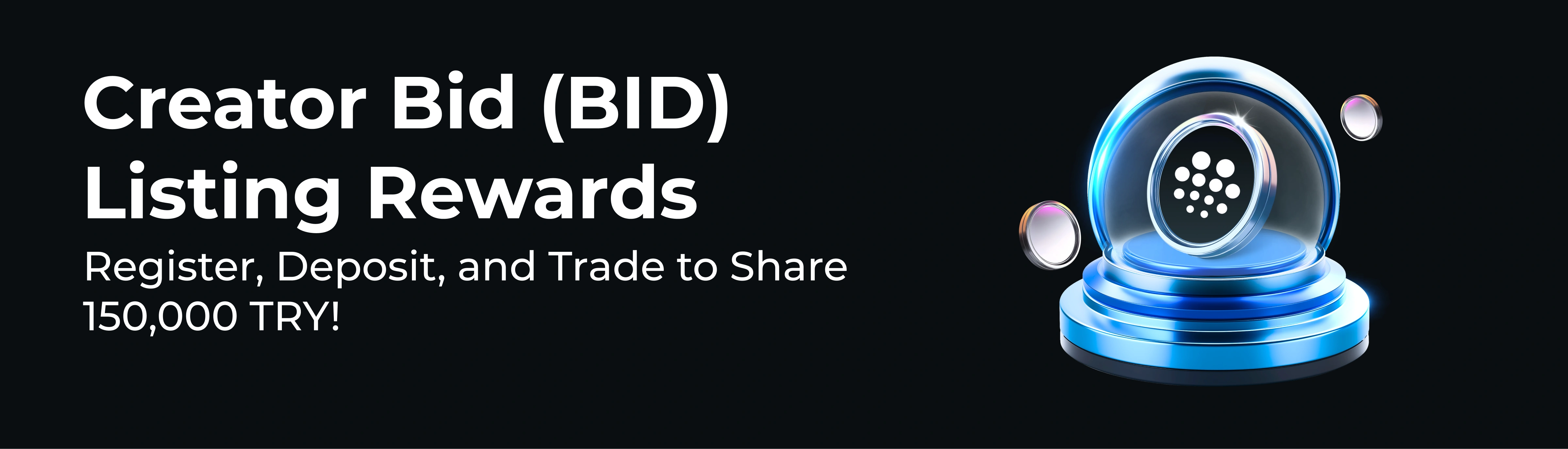 Gate.TR официально представил Creator Bid (BID) и объявил о проведении эксклюзивного ограниченного по времени события с наградами! Регистрируйтесь, вносите депозит и торгуйте BID, чтобы разделить призовой фонд в 150,000 TRY!