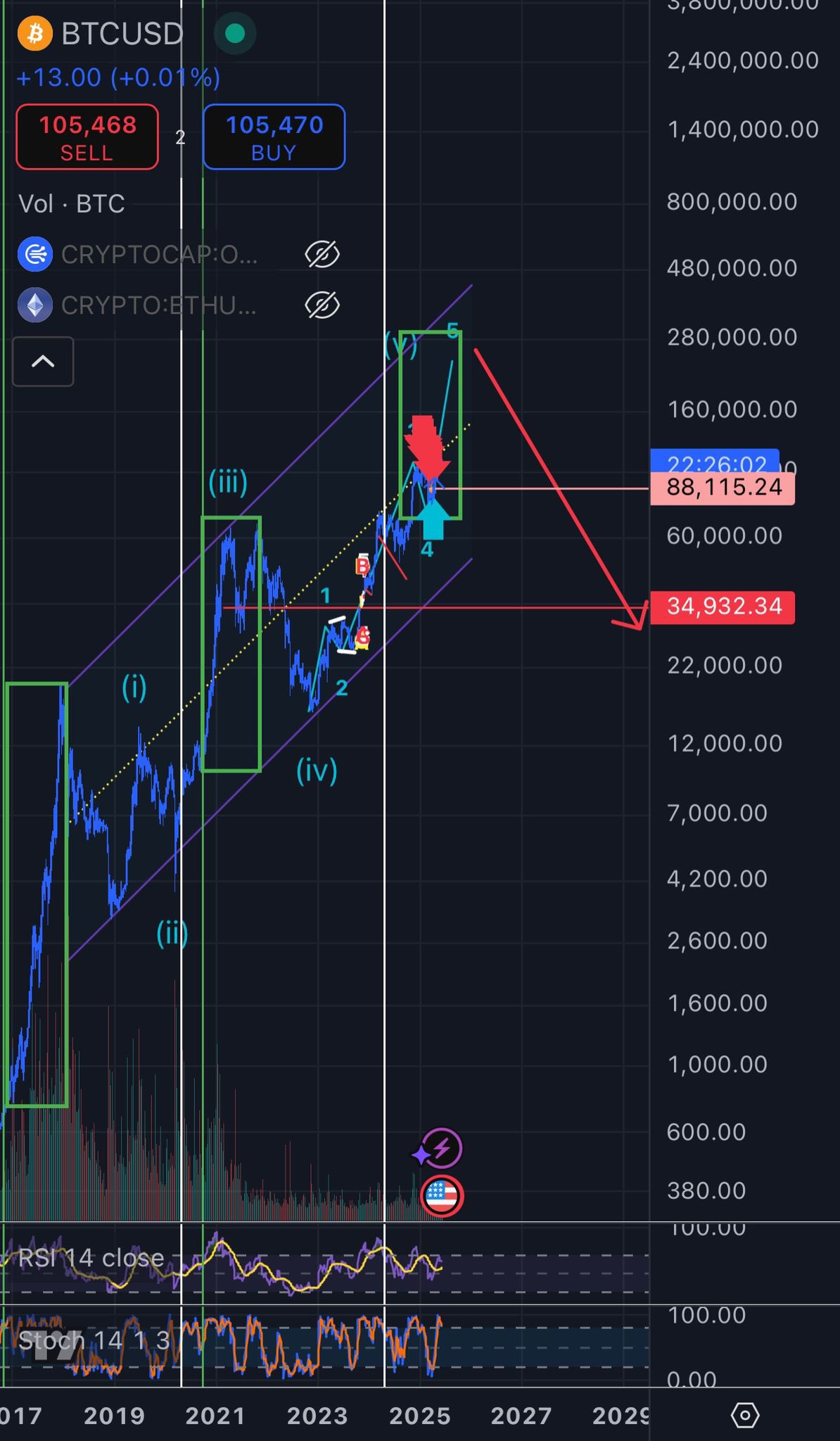 Этот аналитик использовал теорию волн Эллиотта для построения графика, который показывает, что Биткойн завершает пятую, последнюю микроволну классического пятилучевого импульсного цикла. Последний раунд роста, который уже преодолел шестизначное значение, похоже, представляет собой пятую волну, что обычно является последним импульсом перед перезагрузкой рынка.