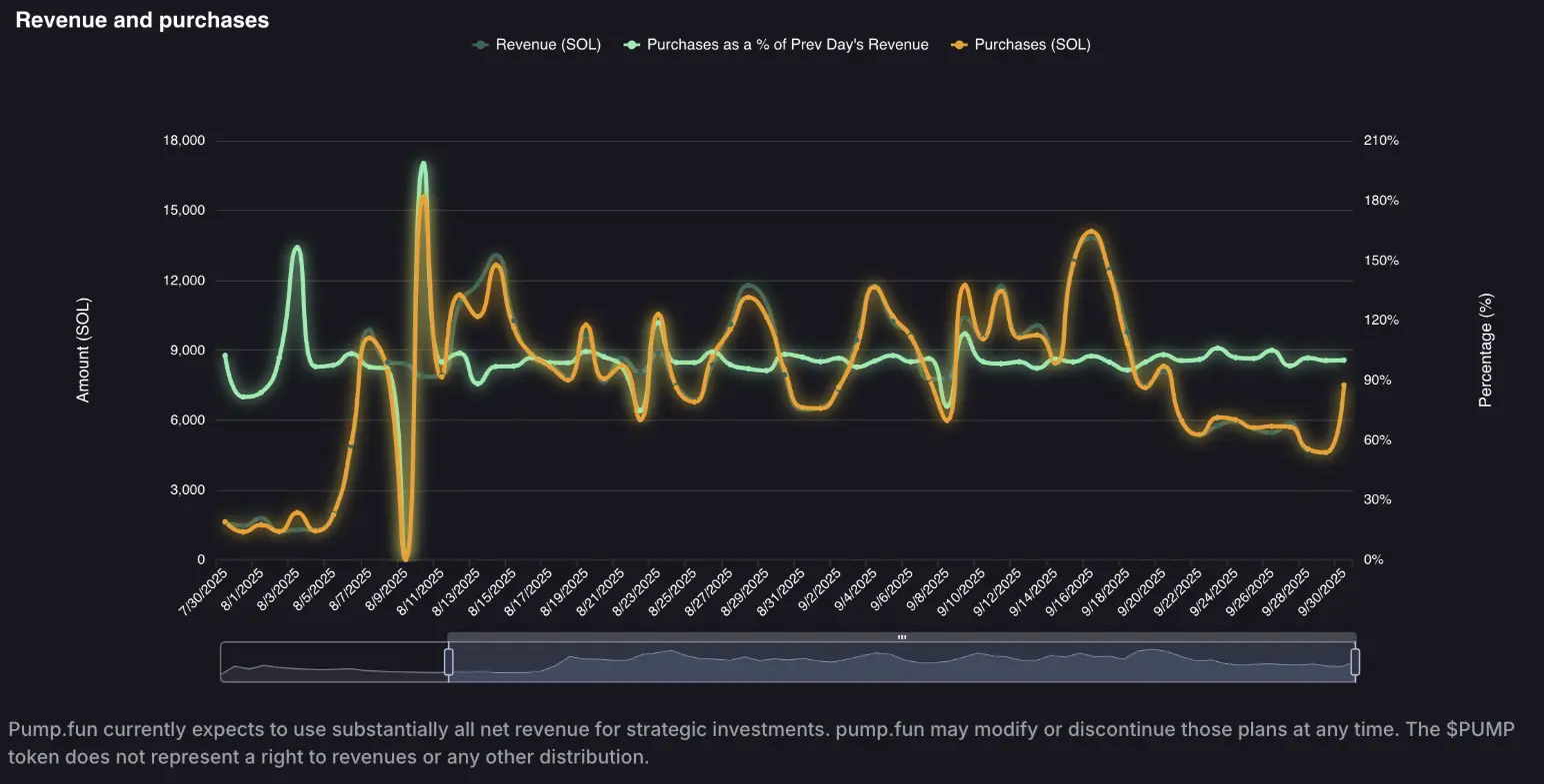 Pump.fun только что потратил 7.496 SOL на выкуп токенов PUMP, увеличив общую стоимость покупки до 617.749 SOL, на фоне резкого увеличения дохода во вторник до 7.498 SOL. Действие выкупа обычно создает давление на снижение предложения, что способствует росту цен и демонстрирует сильную уверенность команды в проекте.