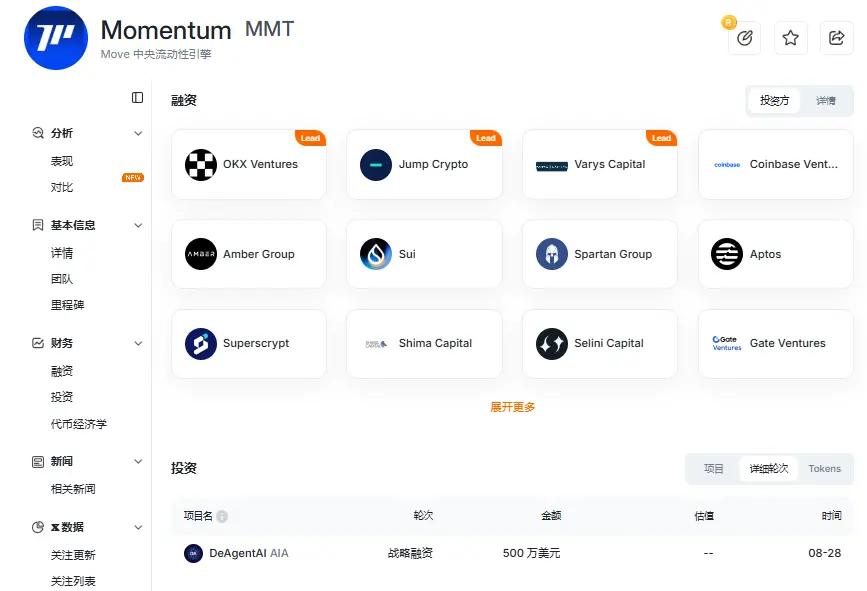 据悉,Momentum 作为 Sui 网络上领先的集中流动性做市商(CLMM)DEX,以其基于Uniswap v3式架构和高效率的交易机制吸引了广泛关注。据 Rootdata 信息显示,Momentum 先后获得 OKX Ventures、Jump Crypto、Varys Capital、Coinbase Ventures、Amber Group、Sui 等机构的投资,并于今年8月参与了DeAgentAI(AIA)的500万美元战略融资。