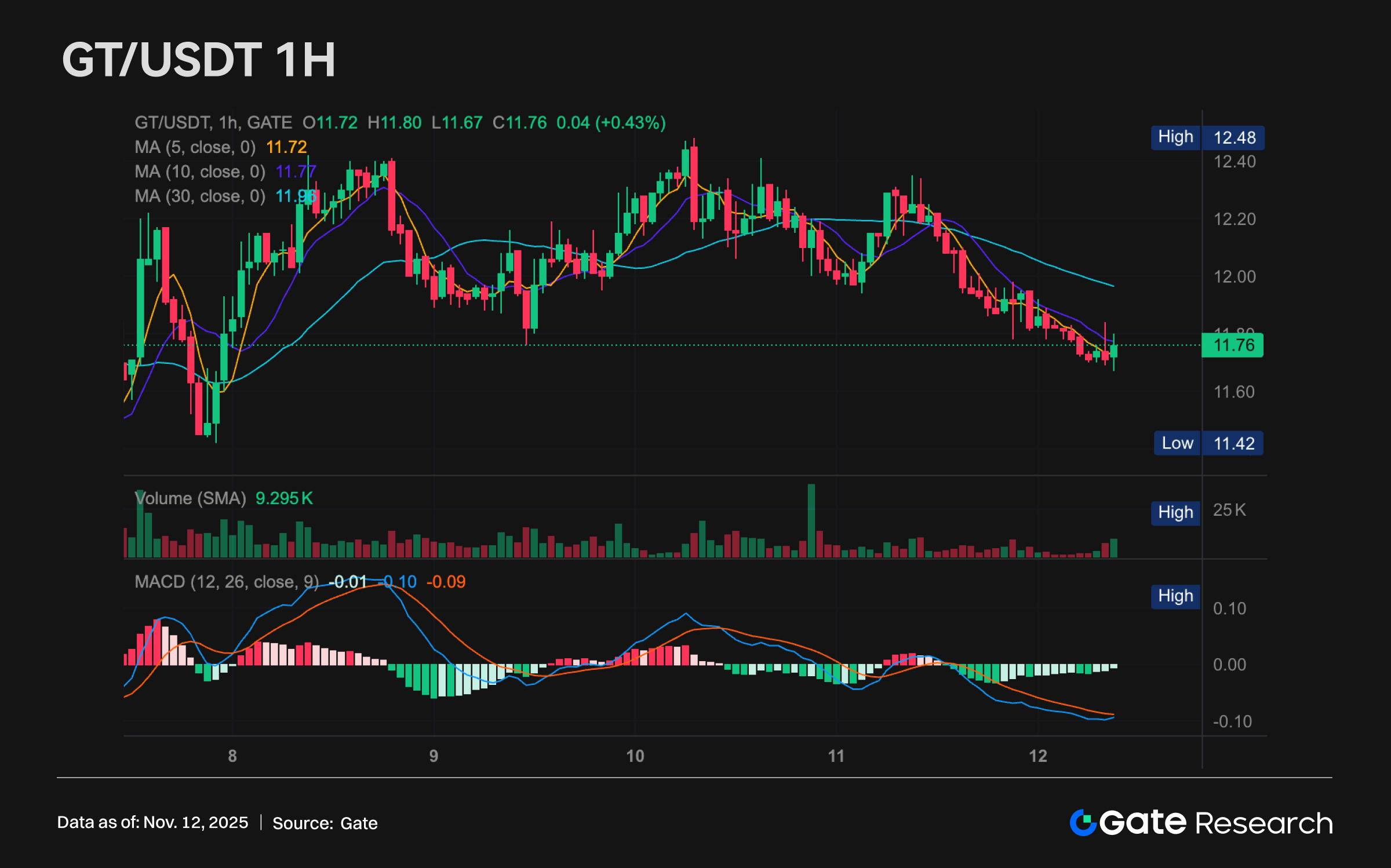 GT(+0.43% 丨 текущая цена 11.76 USDT)