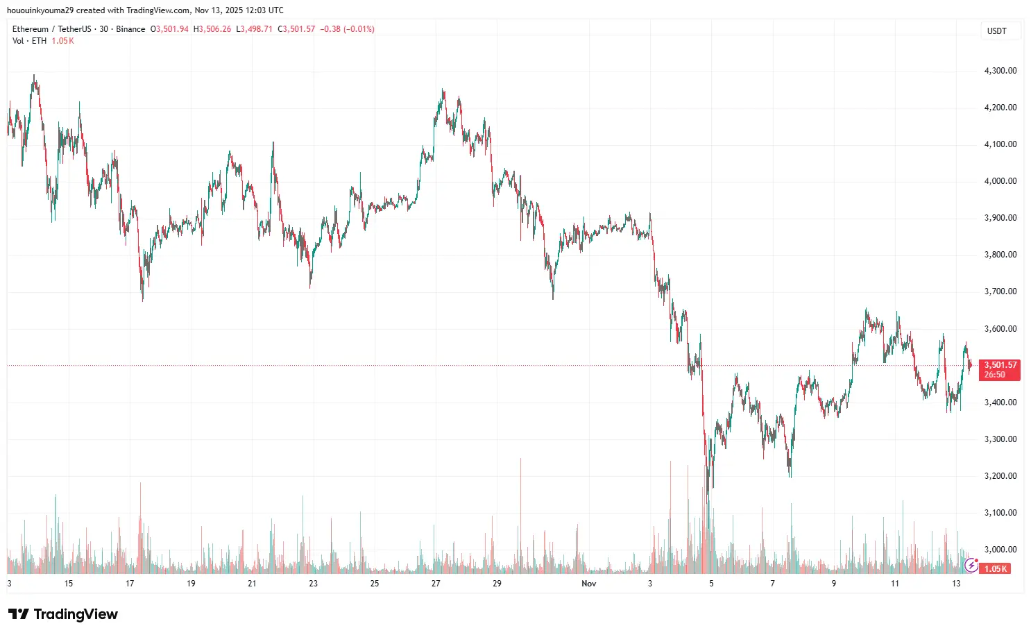 Эфириум, крупнейший среди альткоинов, в последнее время находится в стадии консолидации, так как его цена все еще торгуется около $3,500.