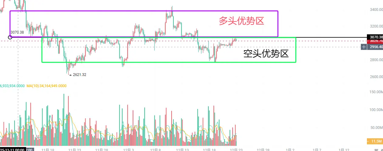 ETH: Второй блин сейчас полностью движется в ритме с первым блином, хотя на дневном уровне наблюдается краткосрочный рост, уровень 3070 сверху выглядит как непреодолимый барьер. Снизу, уровень 2780 с недостатком объема не позволяет атаке продолжаться, а недавние золото и большой А еще больше оттянули ликвидность с рынка, поэтому в последнее время рынок выглядит как мертвая вода. ! !