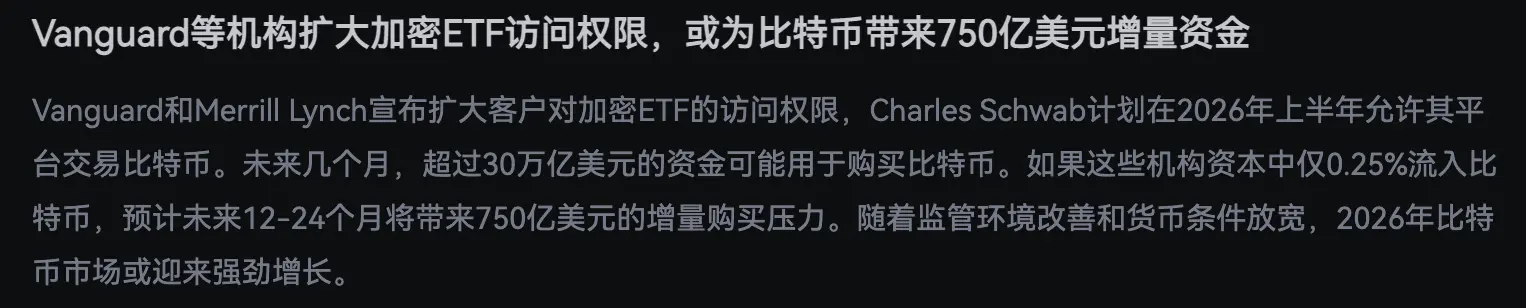 Even traditional financial “stubborn old men” like Vanguard and Merrill Lynch are starting to expand access to crypto ETFs! Charles Schwab is even clearly stating that it will allow trading of Bitcoin in the first half of 2026. What does this mean?