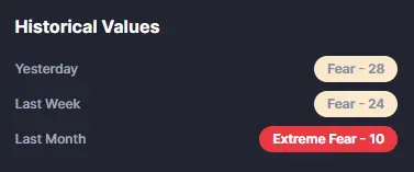 Cảm Xúc Thị Trường (CMC Chỉ Số Sợ Hãi & Tham Lam): 29/100 → Khu Vực Sợ Hãi