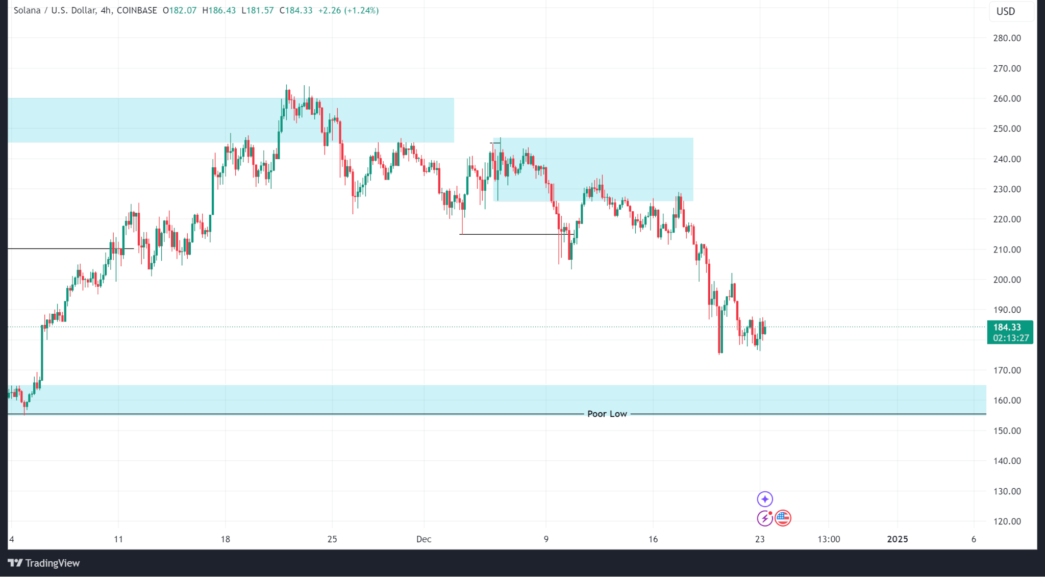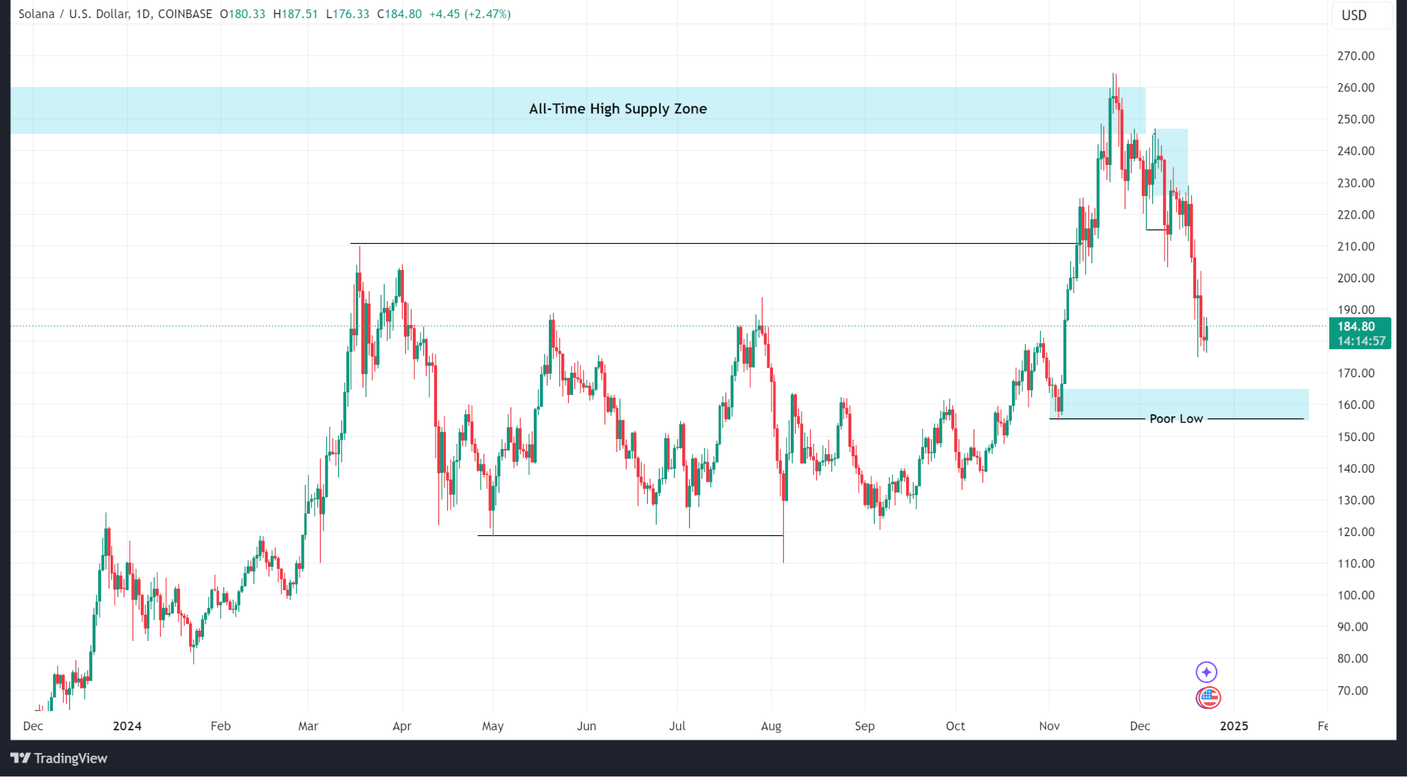 Hành động giá của Solana tiếp tục giảm bắt đầu từ hai tuần trước sau khi không thể vượt qua đỉnh cao mọi thời đại là 260,02 đô la.