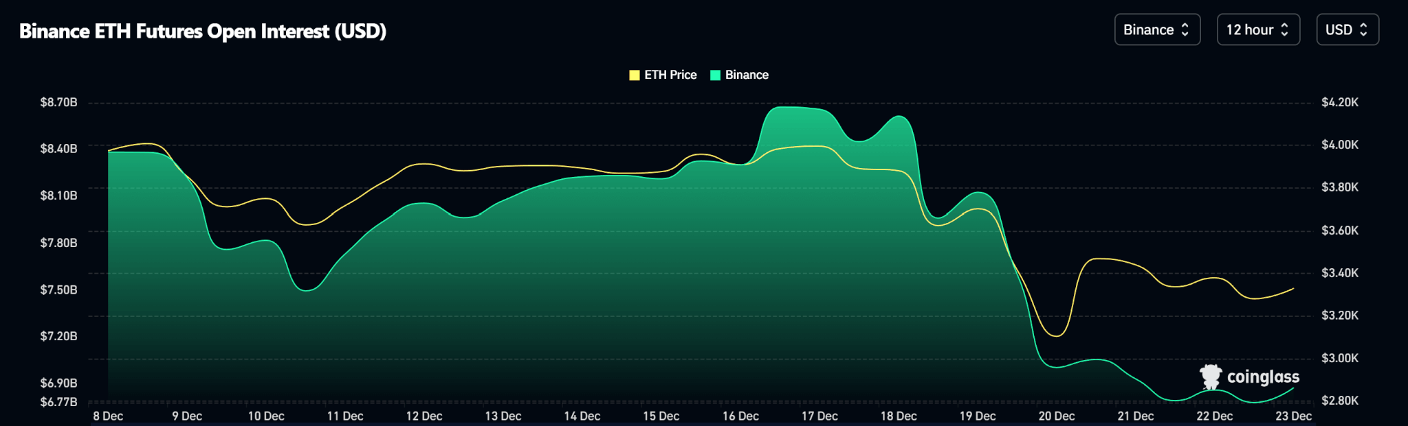 Trong khi đó, mức mở lệnh của Ethereum cho thấy sự giảm mạnh phù hợp với giá.