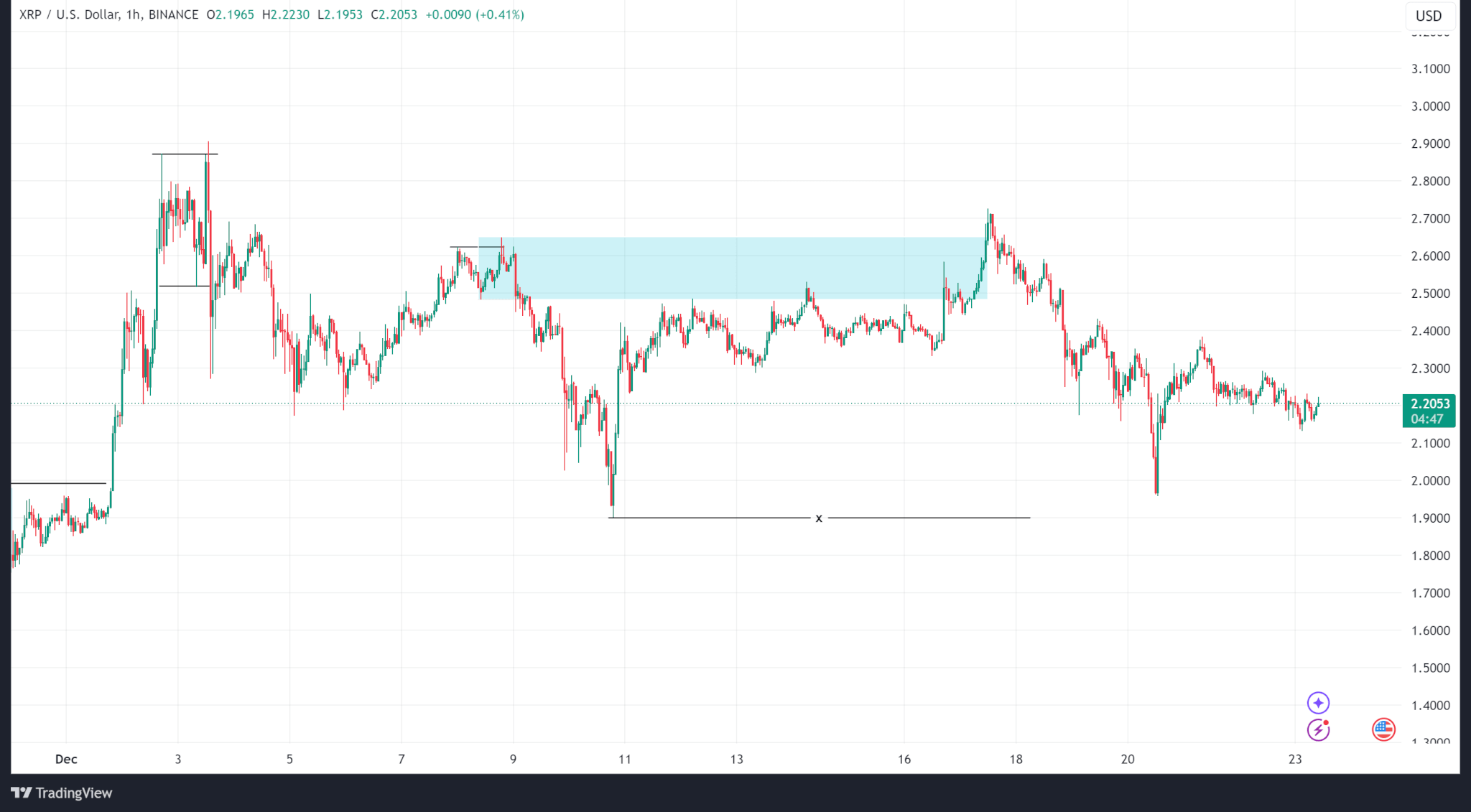 Giá Ripple giao vào một vùng cung nội bộ và vượt qua nó vào ngày 17 tháng 12 nhưng giảm xuống mức thấp hàng tuần là 1,95 đô la trước khi cuối cùng đóng cửa ở mức 2,27 đô la (giảm 16,42%).