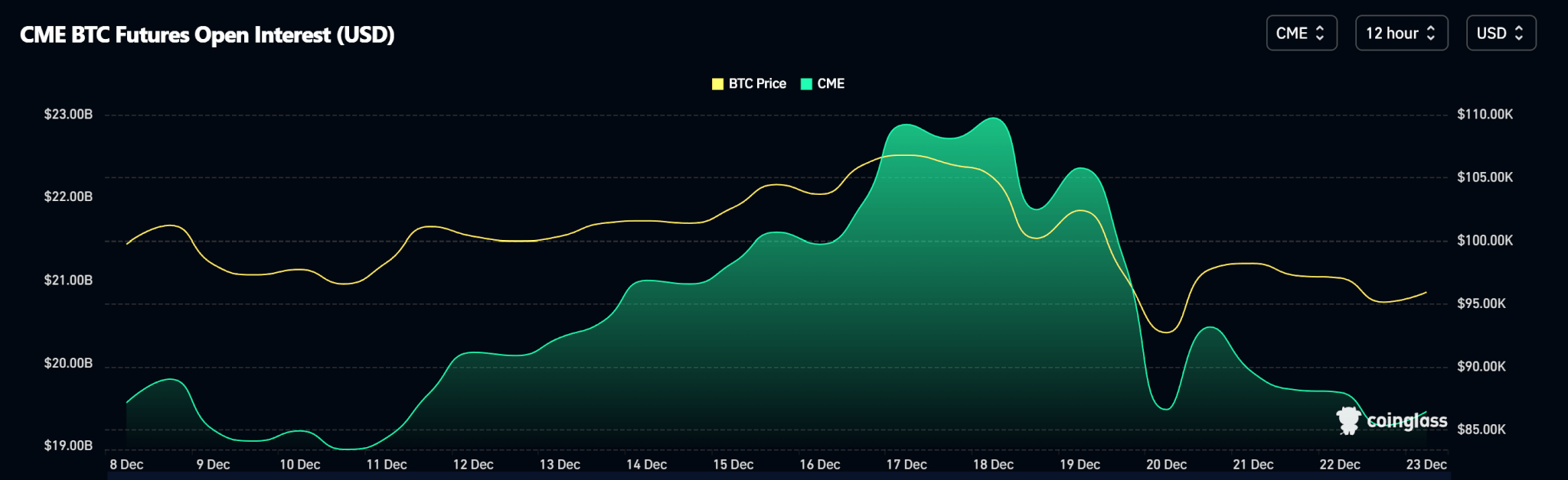 Dữ liệu Mở lệnh cho thấy giảm các hợp đồng mở tại CME phù hợp với sự giảm giá.