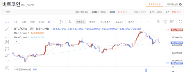 截至23日上午8點,Bitcoin (BTC)在某交易所的交易價格爲1.6298億韓元,比前一天下跌了0.85%。
