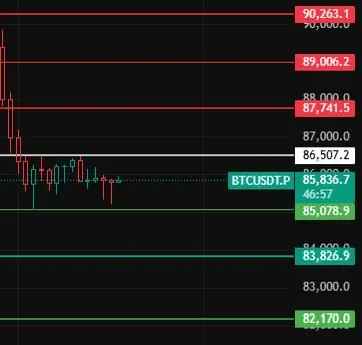 二、各幣種具體分析(以下點位僅供參考) BTC: 關鍵位:86,500(站穩可嘗試短多) 支撐階梯:85,080 → 83,830 → 82,200 壓力區間:87,740 → 89,000 → 92,260
