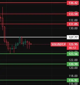 SOL: 關鍵位:127(站穩可博弈反彈) 支撐階梯:123 → 117 → 112 壓力區間:131 → 133 → 136