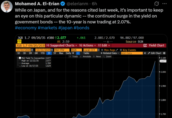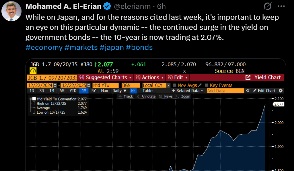 艾爾-埃裏安 "日本國債利率上升,將導致全球資金重組" 警告