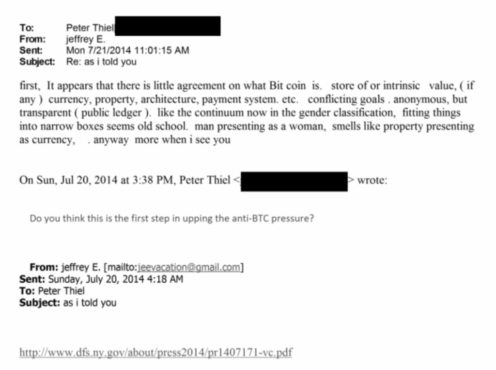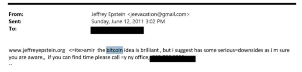 電子郵件交流顯示,Jeffrey Epstein 早在2011年就開始關注比特幣。通訊記錄顯示,他在比特幣仍屬於小眾實驗時期,討論其長期潛力。電子郵件中,他曾描述比特幣為“絕妙的點子”,儘管也承認其缺點。後來的電子郵件還顯示 Epstein 與知名風險投資家交流比特幣的價值主張。