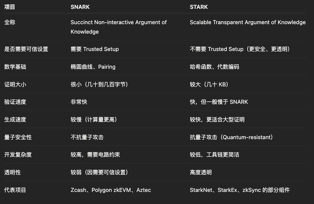 代表项目:Starknet、zkSync(部分采用)、Celestia 数据验证