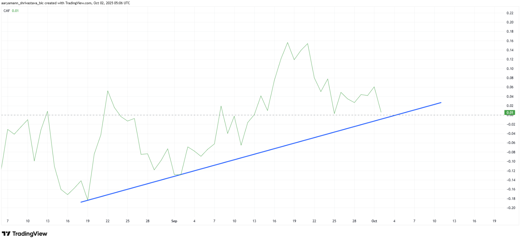 CMF的可持续力量进一步增强了对延续上涨趋势的信心。大量资金流入HBAR不仅巩固了市场结构,还帮助抵消了来自空头投机者的卖压。