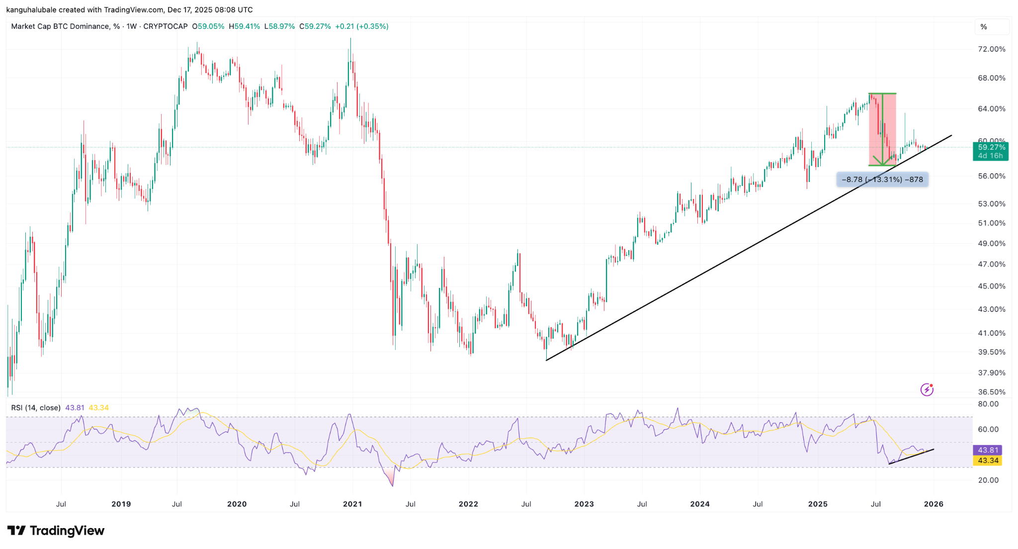 “比特币的市场主导地位正在形成一个更高的低点,资金正在回流到比特币,而不是山寨币,”CyrilXBT在一条X帖子中说道,补充道: